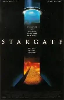 Stargate is a 1994 science fiction adventure film[6] directed and co-written by Roland Emmerich. The film is the first entry in the Stargate media franchise and stars Kurt Russell, James Spader, Jaye Davidson, Alexis Cruz, Mili Avital, and Viveca Lindfors. The plot centers on the premise of a "Stargate", an ancient ring-shaped device that creates a wormhole, enabling travel to a similar device elsewhere in the universe. The film's central plot explores the theory of extraterrestrial beings having an influence upon human civilization.