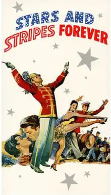 Stars and Stripes Forever is a 1952 American Technicolor film biography of the late-19th-/early-20th-century composer and band leader John Philip Sousa. This 20th Century Fox feature was produced by Lamar Trotti, directed by Henry Koster, and stars Clifton Webb, Debra Paget, Robert Wagner, and Ruth Hussey. The film's title is taken from Sousa's "The Stars and Stripes Forever", which has become the best known of his military marches.[2] The film was released twenty years after Sousa's death.