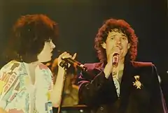 Grace Slick and Mickey Thomas onstage in 1985