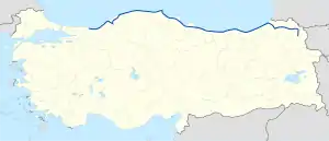 D.010, aka Black Sea Coastal Road, is a major west-east state road in northern Turkey that serves the Black Sea coast. The 1,427 km (887 mi) route starts in the west at the intersection D.014, 5 km (3.1 mi) southeast of Karasu, Sakarya Province, and terminates at the intersection D.060, 25 km (16 mi) northeast of Kars in eastern Anatolia. However, it is discontinued between Zonguldak and 10 km (6.2 mi) southwest of Çaycuma. The gap of 37 km (23 mi) distance is on the highway D.750.[1]