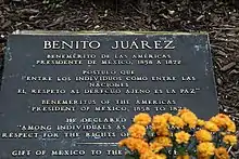A full-length statue of Benito Juárez, who served as president of Mexico from 1858 to 1872, is installed in the Plaza of the Americas, along Michigan Avenue, just north of the Wrigley Building in Chicago, Illinois.[1][2]