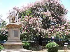 The statue of Edward VII in Bangalore is located at Queen's Park, next to Cubbon Park, Bangalore Cantonment, at the junction of Queen's Road and Cubbon Road. The statue was unveiled on November 1919 by the then Viceroy and Governor-General of India, Frederic John Napier, Baron Chelmsford. The statue was raised out of funds raised by the residents of the Bangalore Civil and Military Station. The Statue of King Edward VII is one of the few of the original statues which were installed in British India, to still stand at its original location. The statue rises above a flowering frangipani tree. On the other end of Queen's Park is the Statue of Queen Victoria, Bangalore.[2][3] The statue was designed and sculpted by Leonard Jennings of Chelsea, London.[4]