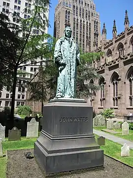 An outdoor bronze sculpture depicting U.S. Congressman John Watts by George Edwin Bissell is installed in the Trinity Church Cemetery outside Manhattan's Trinity Church, in the U.S. state of New York. It was erected by Watt's grandson, John Watts de Peyster, in 1893.[1]