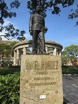 A statue of Manuel M. Diéguez is installed along the Rotonda de los Jaliscienses Ilustres, in Centro, Guadalajara, in the Mexican state of Jalisco.[1]