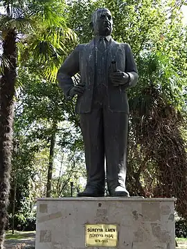 A statue of Süreyya İlmen is installed in Kadıköy's Yoğurtçu Park, in Istanbul, Turkey.[1][2] Rahmi Aksungur’un created this memorial in 2013.[3]