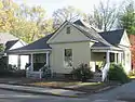 The neighborhood that resulted from Steele's subdivision consists almost entirely of single-story houses, most of which were built in a "Free Classic" style that resembles the Queen Anne style of architecture. Some of the houses in the neighborhood are older than the neighborhood itself, such as three different double-pen houses that were constructed during the nineteenth century.[2]: 15 Two of the houses are duplexes;[4] erected largely for speculative purposes, they were constructed in such a way that they resemble single-family houses. The form of architecture employed for these residences is known as the "T-plan" because of their floor plan that is shaped like that letter; they feature porches on both sides that are separated by a large gable with a pediment.[2]: 15