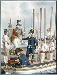 At the capitulation on 7 September 1807, Bille refused to append his signature and sought permission from the crown prince (later Frederick VI) to launch what would be a suicide attack with all available weapons. He is quoted (in translation) as saying "I foresaw that my suggestion would achieve nothing other than my own and my naval warriors honourable deaths. In the meantime we could have won enough time that the Fleet might have been destroyed at its anchorage."[Note 2] On 9 October 1809 Bille was promoted to rear admiral.