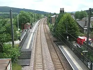 Until recently, the station lacked full access for disabled users, which led some to catch trains in the opposite direction to change platforms.[12] Access is now possible via a fairly steep ramp to the Leeds & Bradford-bound platform.[13] Though the station is normally unstaffed, there are ticket machines available at the station for passengers to use. The station has digital information screens and a long-line PA system.