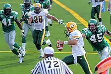 LeFors was selected by the Carolina Panthers in the fourth round (121st overall pick) of the 2005 NFL Draft out of the University of Louisville.[1] After serving one season in a backup role, he was released by the Panthers in September 2006. LeFors conducted workouts for the Tampa Bay Buccaneers, Minnesota Vikings, Seattle Seahawks, Buffalo Bills, Detroit Lions, Oakland Raiders, and Denver Broncos but was not offered a contract. In December 2006, LeFors was signed by the Edmonton Eskimos of the CFL as an import player. He was the backup quarterback for the team's 2007 season, but had the opportunity to start 5 games at the end of the season because of Ricky Ray's shoulder injury. By the end of the 2007 CFL regular season, LeFors was placed 8th in the league in passing yardage with 1193 yards, as well as 6 touchdowns and 8 interceptions, while completing 60.8% of his passes. He was 7th in quarterback rushing yardage with 204 yards and 2 touchdowns. His best performance of the season came in week 18 against Saskatchewan. In a losing effort, he managed to complete 34/48 passes for 412 yards 3 touchdowns and 1 interceptions, while scrambling 6 times for 31 yards. According to head coach Danny Maciocia, LeFors shares the job as 2nd string quarterback on the Eskimo depth chart for the 2008 campaign with Jason Maas.