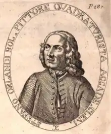 Stefano Orlandi (1681 – 29 July 1760) was an Italian painter, active mainly in Bologna in the architectural perspective painting. He is known for painting fanciful architectural canvases, known as Capricci.