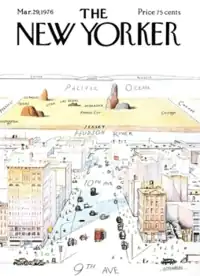 The subject of the controversy was a drawing by Steinberg known as View of the World from 9th Avenue or A Parochial New Yorker's View of the World. The drawing, which appeared on the cover of the March 29, 1976 issue of The New Yorker, depicts four city blocks of Manhattan in great detail, with the rest of the United States and the world sketched sparsely in the background. The horizon is marked by a red line, and a thin blue wash of color at the top denotes the sky. At the top is the name of the magazine, in its characteristic font.