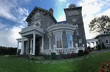 It was built in 1858, originally on 440 acres (1.8 km2) on the Long Island Sound, by Benjamin Pike Jr., a manufacturer of scientific instruments. After Benjamin Pike Jr.'s death in 1864, his widow sold the mansion to William Steinway of Steinway & Sons in 1870. Jack Halberian purchased the Mansion in 1926 and upon and his death in 1976, his son Michael Halberian inherited the property and began an extensive restoration. The New York City Landmarks Preservation Commission designated the building as a landmark in 1966, and it was listed on the National Register of Historic Places in 1983.[2][3] Henry Z. Steinway, the last member of the Steinway family to be president of the piano company Steinway & Sons, said the "Steinway Mansion" name was misleading, since "the Halberians owned the mansion longer than the Steinways did".[4]