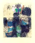 Since 1981 Stepan Veranian has made etchings, aquatints and linocuts. Veranian fully embraced linocuts, during the period spent working in the Graphics Department, National Center of Aesthetics of Armenia. The National Gallery of Armenia[2][3] and MAMY have bought his prints. The thirteen Blue Prints of 1985 were made with linocut and painting. Veranian created a key series of 21 large scale linocuts in 1989, influenced by Federico García Lorca's poems. Other prints include the Composition and Dreams (1989) series, consisting of 13 linocuts. This series of linocuts was displayed for the first time in September 1990 at MAMY, as part of a group exhibition. The Migration (tales of the Aegean Sea, sheet 02 and 03, the Pushkin State Museum of Fine Arts, Moscow), a series of 21 etchings, was created between 1989 and 1991. In May 1995, he created a number of etchings, inspired by his public and private life, for an exhibition called Moscow-Yerevan, Question of the Ark at MAMY.