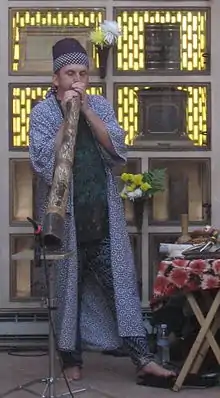 With the band Trance Mission, he joined the ranks of Jon Hassell, Steve Roach, and Robert Rich in exploring primal, techno-tribal music. Trance Mission was co-formed in San Francisco in 1992 by Stephen Kent (Didjeridu/Percussion), Beth Custer (Clarinets/Trumpet), John Loose (Multi-Ethnic Drums/Samples), and Kenneth Newby (Asian Winds/Digital Atmospheres), making up the quartet which produced 3 globally acclaimed CDs on the City of Tribes label over as many years in the mid-nineties.[1] After several European tours and many live appearances on the West Coast of the US, Loose and Newby moved on to other projects while Custer and Kent continued as Trance Mission, with Eda Maxym (also of Beasts of Paradise) joining on vocals and Canadian Peter Valsamis on Drums/Samples. This version of Trance Mission produced a live CD, "A Day out of Time", in 1999. Another version of Trance Mission performed at the Starwood Festival in 2006, featuring Stephen Kent, Peter Valsamis, Geoffrey Gordon, Eda Maxym and cellist Rufus Cappadocia.[2] (Kent had performed as a soloist at Starwood the previous year, opening for Brazilian percussionist Airto Moreira.[3])
