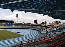 The main venue at the complex is the Governor Okowa Main Bowl, the football and athletics stadium. It was formerly known as Asaba township stadium, and was named after football great, Stephen Keshi.[1][2] The stadium hosted the 2018 African Championships in Athletics and has a capacity of 22,000 people,[3][4] all covered. It was commissioned in 2018.