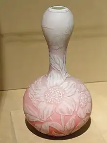 Its most notable cameo glass dated from the 1880s when the studio was under the direction of John Northwood. He was also known for the very unusual and complex Moss agate glass vases.