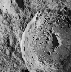 Stevinus is a lunar impact crater located in the southeast part of the Moon. To the southeast is the large crater Furnerius. Just to the northeast is Snellius and the Vallis Snellius crater valley. To the west-northwest lies Reichenbach. To the west-northwest of Stevinus is the tiny crater Stevinus A, a feature that possesses a small ray system and a displays a high albedo.[1]
