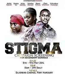 Stigma is a 2013 Nigerian drama film based on the discrimination faced by persons living with HIV virus in a village in Rivers State.[1] It was directed by Diminas Dagogo and stars Jackie Appiah, Hilda Dokubo and Emeka Ike. The film was produced by Rivers State Ministry of Health.[2]
