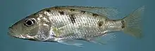 Stigmatochromis woodi is a species of cichlid endemic to Lake Malawi where it can be found hunting for prey over sandy areas. It can reach a length of 25 centimetres (9.8 in) TL. It can also be found in the aquarium trade.[2] The specific name honours Rodney C. Wood, whose collection of cichlids from Lake Malawi, which included the type of this species, was presented to the British Museum (Natural History).[3] It is the type species of the genus Stigmatochromis.[4]