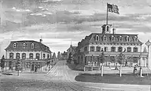 An 1877 lithograph print of the Sandt & Co. Building and the Centennial Hotel