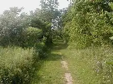 A September 2006 view of the formerly-undeveloped Stockertown Rail Trail. Its intersection with Dogwood Lane is just out of view.