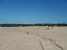 Stockton Beach is located north of the Hunter River in New South Wales, Australia. It is 32 km (20 mi) long and stretches from Stockton, to Anna Bay. Over many years Stockton Beach has been the site of numerous shipwrecks and aircraft crashes. In World War II it was fortified against a possible attack by Imperial Japanese forces.[1] During that time it served as a bombing and gunnery range as well as a dumping area for unused bombs by aircraft returning from training sorties.[2] The length of the beach, its generally hard surface and numerous items of interest along the beach make it popular with four-wheel drive (4WD) enthusiasts. Four-wheel drive vehicles are permitted to drive on Stockton Beach provided the vehicles are in possession of valid permits.[3] The beach is also popular with fishermen and several different varieties of fish may be caught.[1][2]