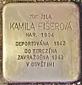HERE LIVED KAMILA FIŠEROVÀ BORN 1904 DEPORTED 1942 TO THERESIENSTADT MURDERED 6.9.1943 IN AUSCHWITZ |
