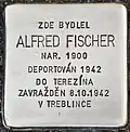 HERE LIVED ALFRED FISCHER BORN 1900 DEPORTED 1942 TO THERESIENSTADT MURDERED 8.10.1942 IN TREBLINKA |