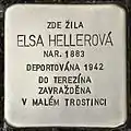 HERE LIVED ELSA HELLEROVÁ BORN 1883 DEPORTED 1942 TO THERESIENSTADT MURDERED IN MALY TROSTENETS |