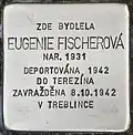 HERE LIVED EUGENIE FISCHEROVÁ BORN 1931 DEPORTED 1942 TO THERESIENSTADT MURDERED 8.10.1942 IN TREBLINKA |