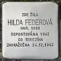 HILDA FEDEROVÁ BORN 1888 DEPORTED 1942 TO THERESIENSTADT MURDERED 24.12.1942 | Na Hradbách 124 50°01′41″N 15°11′58″E / 50.028°N 15.199347°E |