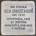 HERE LIVED RITA ORNSTEINOVÁ BORN 1913 DEPORTED 1942 TO THERESIENSTADT MURDERED 18.12.1943 IN AUSCHWITZ |