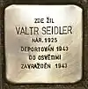 HERE LIVED VALTR SEIDLER BORN 1925 DEPORTED 1943 TO AUSCHWITZ MURDERED 1943 |
