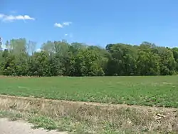 Stoner lies in the middle of open fields several miles from the nearest community. Located near the Wabash River and about 4.5 miles (7.2 km) south of the village of Hutsonville, the site is situationed in rural eastern Crawford County.[1]: 3 It lies in the floodplain of a small stream, Sugar Creek, which flows about 1 metre (39 in) below the site, approximately 180 metres (590 ft) to the northeast; the soil is largely clay, but due to the presence of the stream, much of the immediate vicinity is typically marshland. The surrounding countryside is the heavily glaciated prairies typical of much of Illinois, although before settlement the region straddled the boundary between the open plains to the west and the woodlands to the east.[1]: 2 A gravel road traverses the fields a short distance west of the site.[1]: 3 Its location in a prairie near marshland is common for sites of the culture that inhabited the village.[3]: 120