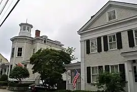 The Stonington Harbor Light is a low stone building erected in 1823 and was the first lighthouse established by the federal government. In the 19th century, Stonington supported a small fishing, whaling, and sealing fleet, with some direct trade with the West Indies, enough in volume for it to be made a port of entry in 1842. The small granite Customs House faces Main Street just north of Cannon Square.