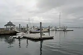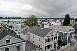 The densely built Borough of Stonington occupies a point of land that projects into Little Narragansett Bay. It has two main streets that link Cannon Square and Wadawanuck Square, named for the former Wadawanuck Hotel that brought wealthy visitors in the post-Civil War era. Its colonial, Federal, and Greek revival architectures have been preserved through the lack of traffic or modern industry, together with the borough's role as a fashionable summer residence, while the activity of one of Connecticut's last remaining fishing and lobstering fleets keeps it from being simply a quaint, historic village. There is a large community of Portuguese descent.