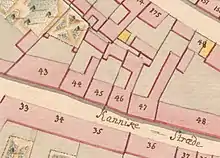No. 45 seen on a detail from Christian Gedde's map of Klædebo Quarter, 1757.