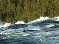 To prevent accidents the rocks surrounding the rapids are fenced, views being readily accessible to the public via ramps. While the rapids were used in previous years to transport logs, today its surroundings are part of a nature park, visited by 150,000 people each year.