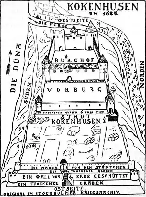 A drawing of Kokenhusen and its fortress about 30 years prior to the storming.