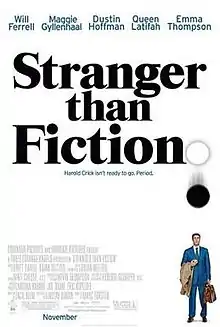 Stranger than Fiction is a 2006 American fantasy comedy-drama film directed by Marc Forster, produced by Lindsay Doran, and written by Zach Helm. The film stars Will Ferrell, Maggie Gyllenhaal, Dustin Hoffman, Queen Latifah, and Emma Thompson. The main plot follows Harold Crick (Ferrell), an IRS agent who begins hearing a disembodied voice narrating his life as it happens – seemingly the text of a novel in which it is stated that he, the main character, will soon die – and he frantically seeks to somehow prevent that ending.