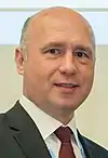 After that, on 12 June 2015, when the former Prime Minister Chiril Gaburici announced his resignation, followed by the resignation of the entire Gaburici Cabinet, the three pro-European parliamentary parties, LDPM, DPM and LP formed the Alliance for European Integration III and agreed to form a new government. Although for the post of prime minister was initially proposed Maia Sandu, was eventually named liberal-democrat Valeriu Streleț. In the new government, as compared to the previous Cabinet Gaburici, LDPM and DPM have given up some ministries that have passed to subordination of the LP, a new vice minister's portfolio was set up, which will deal with social issues and return LP, and the LDPM and LP have made a castling with the Ministry of Health and the Ministry of Labor, Social Protection and Family, together with the ministers, Mircea Buga and Ruxanda Glavan. On 29 October 2015 the Government of Streleţ was dismissed by a motion of no confidence. Thus, all ministers entered the interim function, fulfilling only the functions of managing public affairs, until the appointment of a new Cabinet of Ministers.[2] The motion of no confidence of the Streleț Cabinet was filed in Parliament on 22 October (2015), being signed by 42 PSRM and PCRM deputies, its basis being "suspicions of corruption" and "the detachment of the prime minister from his office by exposing in favor of Vladimir Filat. After that parliamentary session was closed for lack of quorum, the motion would be examined at the next meeting on 29 October.[3] To dismiss the government, a simple majority was needed: the vote of 51 out of 101 deputies.[4] At the meeting of October 29, Streleţ government was dismissed with the vote of 65 deputies of the factions of the DPM, PCRM and PSRM, only 18 LDPM deputies voted against.[5][6]