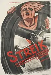 Prior to Strike, Eisenstein had primarily worked in experimental theatre, as a designer and director with the Proletcult Theatre.[4] Boris Mikhin, head of the First Goskino factory, wanted to recruit Eisenstein to work in cinema, but Proletcult wanted to keep him. They negotiated and decided on a joint collaboration, a film cycle called "Towards Dictatorship of the Proletariat".[5] The cycle was to be a historical panorama focused on lessons learned by the Russian working class during the pre-revolutionary period, through political activities such as strikes and underground publications. It had seven parts: Geneva-Russia, Underground, May Day, 1905, Strike, Prison Riots and Escapes, and October.[6]