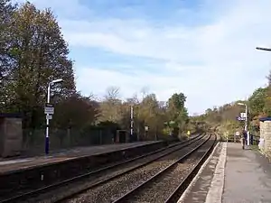 Strines railway station serves the village of Strines, in the Metropolitan Borough of Stockport, on the outskirts of Greater Manchester, England.[1] Until boundary changes in 1994, the station itself lay over the border in Derbyshire.[2]