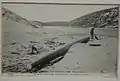 Five of the French sailors then made their way through remote and wild countryside and stumbled upon Tilka Hut. Here they were almost immediately found by local lad Percy May, a wallaby trapper, who happened to be passing while delivering a letter to one of the two Tilka sisters, Carlina and Christina, on Stunsailboom Station. The Tilka Sisters looked after the sailors while Percy May made a dramatic 160-kilometre (100 mi) journey on horseback, that required swimming two rivers, to raise the alarm in the town of Kingscote.[5] Several landmarks remain today as evidence of the wreck including the Stunsail Boom River Station shearing shed that is fabricated from original timbers which bear marks of marine origin, notably their rounded edges and bleached appearance; and also remains of the Montebello's steam boiler are wedged between granite rocks on the foreshore at Shelly Beach, the first of several small coves on the inhospitable southern coast to the west of the river mouth.
