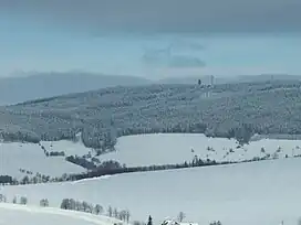 A radio re-transmitter is situated on the top. The upper platform is used as a watchtower. The mountain is also a popular area for skiing.
