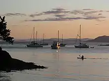 The isolated coves and bays of Sucia Island once served the Lummi Indians in their seal hunting days.[2] They later provided excellent hideouts in the 19th century for smugglers of illegal Chinese laborers, as well as for hiding illegally imported wool and opium. Still later, the islands played a large role in rum-running during liquor Prohibition of the 1920s and 1930s, and in recent years they have figured in drug trafficking.