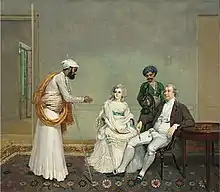 Heatly died in Bengal in 1793.[1] Although unmarried, a nephew has suggested that Heatly "formed a connection with a native of the Country, a thing of frequent occurrence at that time in India, by whom he had several children, whom he educated well and provided for – a daughter of his Mary was sent to England for her education." Christie's, the auctioneers, note that a 1786 portrait of an Indian woman possibly called "Ann" and painted by Charles Smith in Lucknow, might be that bibi (mistress), although bibis did not usually take English names. They add that an Ann Heatly married Joseph Welsh in Calcutta in 1792.[2] Heatly himself was painted, together with his sister Temperance, in Calcutta by Arthur William Devis.[23][lower-alpha 6]