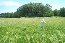A small sign in front of the Sibley Grove Nature Preserve[2] located on the border of section 35 and 26 in Sullivant township.