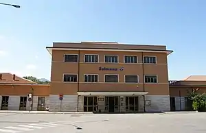 Sulmona is a railway station in Sulmona, Italy. The station opened in 1888 and is located on the Rome–Sulmona–Pescara railway, Terni–Sulmona railway and Sulmona-Isernia railway. The train services are operated by Trenitalia.