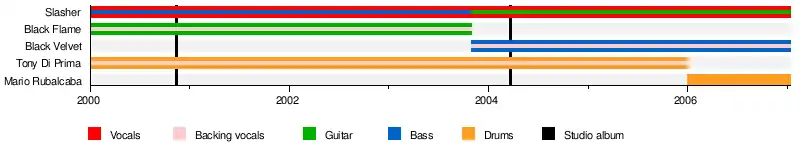 | Past members | Slasher Black Flame Tony Brown Di Prima Black Velvet Mario Rubalcaba |